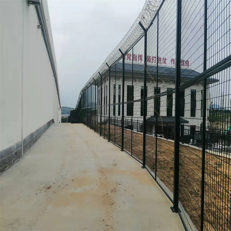 監獄鋼網墻生產廠家、公安局戒毒所鋼網墻,監獄 鋼網墻的生產構造:由刀片剌繩、鋼絲網片與立柱組和而成。它主要采用不同規格的的金屬鐵絲經焊接(編織)加工成網狀,主要絲徑有4.0m,4. 8mm, 5mm, 6mm。 網片加工的網孔規格有: 50X50m,70X1 50mm,80x1 60mm等等。網片兩側的防護立柱采用國標尺寸:圓柱:直徑48mmX2mm圓管 ,直徑60X3mn圓管,直徑80mmX5mn圓管等等:方管40X40nmX2. 5mm,48X48X3mm, 60X60X3mm等等。 客戶可根據實際要求選購。