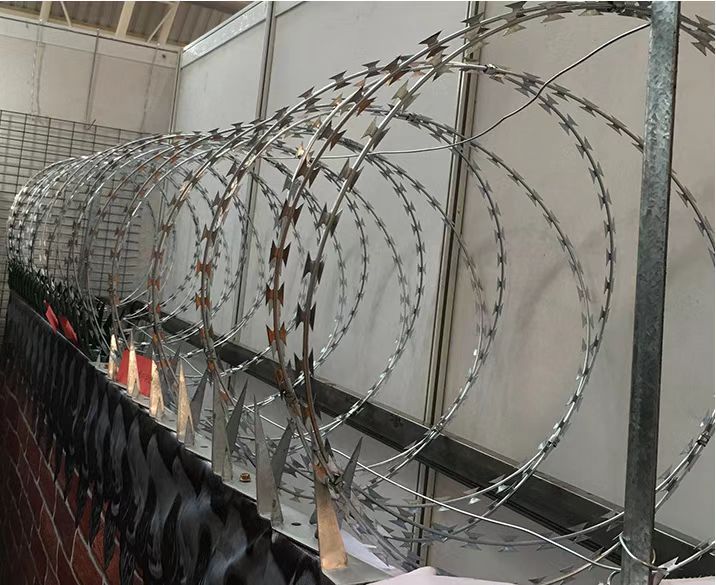目前, 各國已將刀片刺網廣泛用于軍事重地、監獄、政府機關、銀行、警戒區圍墻、私人住宅、別墅的圍墻、門窗、高速公路、鐵路護欄、以及邊境線等防護保安。