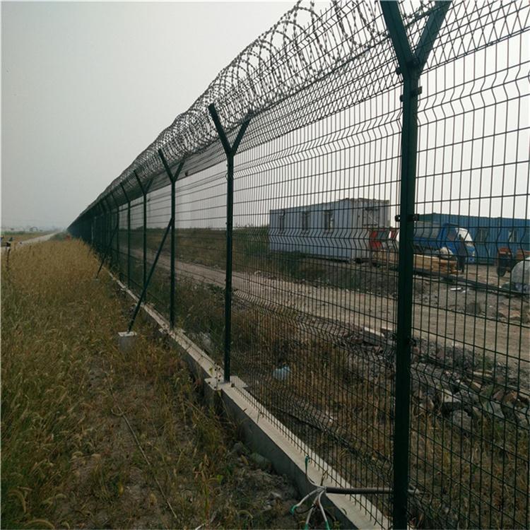 機場護欄網(wǎng)又稱作“V型安全防御護網(wǎng)”,由Y型支架立拄,加強型焊接網(wǎng),安全防盜連接件和熱鍍鋅刀片刺網(wǎng)組成,是強度和安全防御性