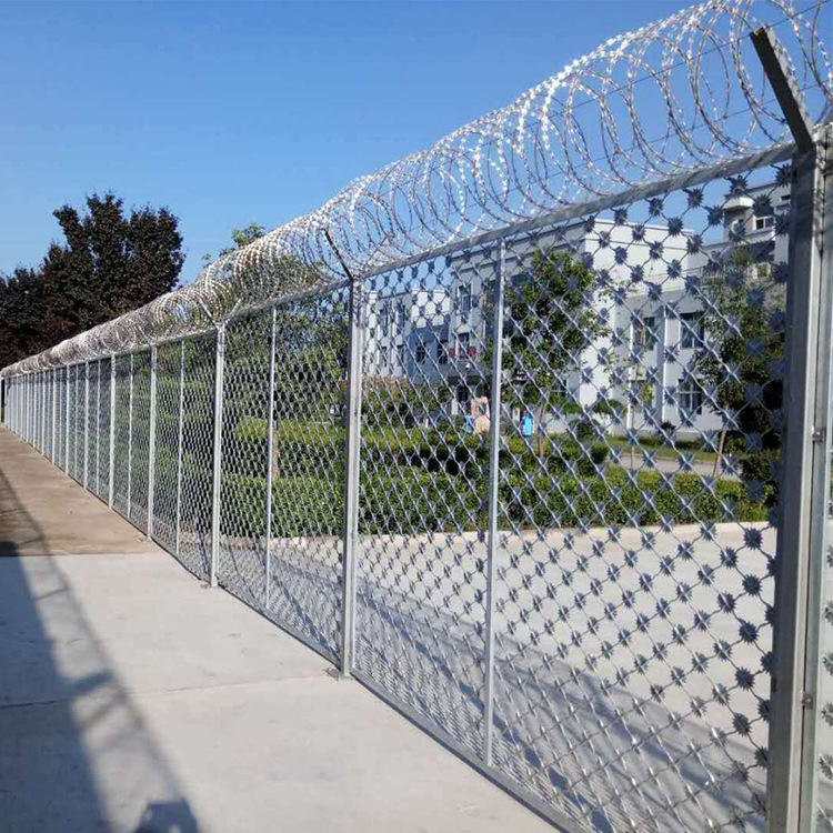 金屬刀刺圍墻網的選材防腐措施:金屬刀刺隔離網主要用于圍墻、獄墻、巡邏道,也稱作刀刺圍墻網,網孔是7.5cm*15cm ,選擇BTO-22型號刀片刺條焊接而成。表面做噴涂處理,顏色有草綠色、墨綠色、中灰色等。