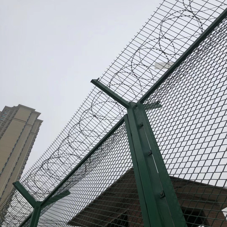 1、Y字型邊境鐵絲網(wǎng),C89圓管、壁厚2.5mm、柱高2.5m、 材質(zhì)熱鍍鋅鋼管、V型角鋼(角鋼規(guī)格40mm* 40mm)表面處理刷銀灰色漆底部預(yù)埋部分刷紅漆。